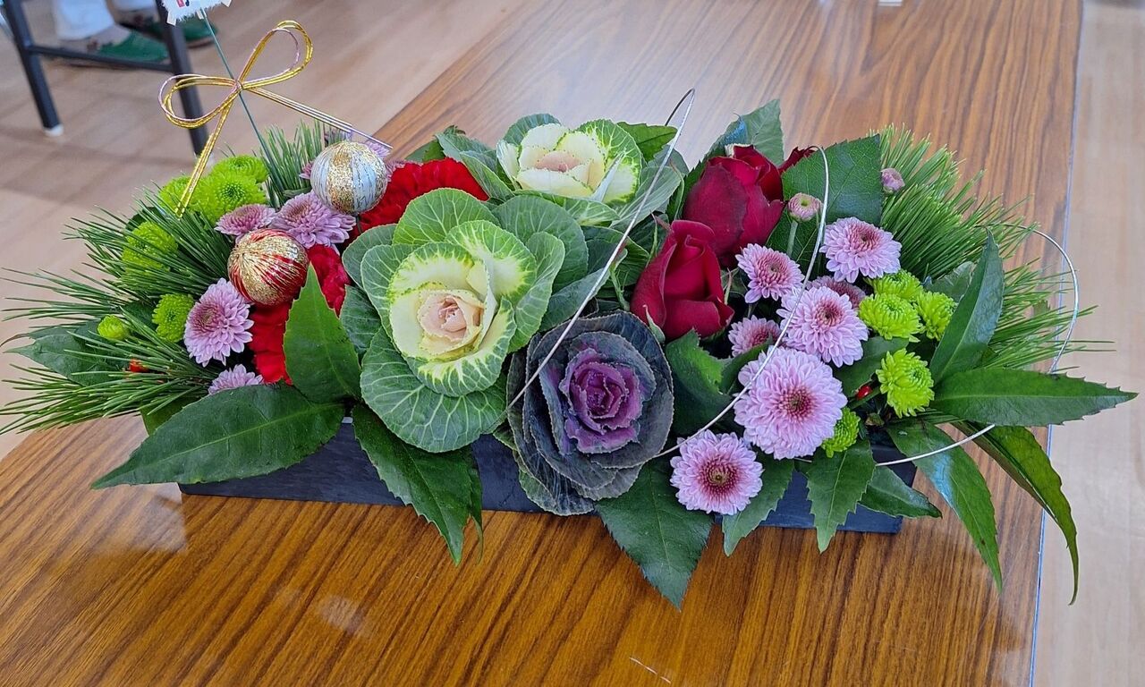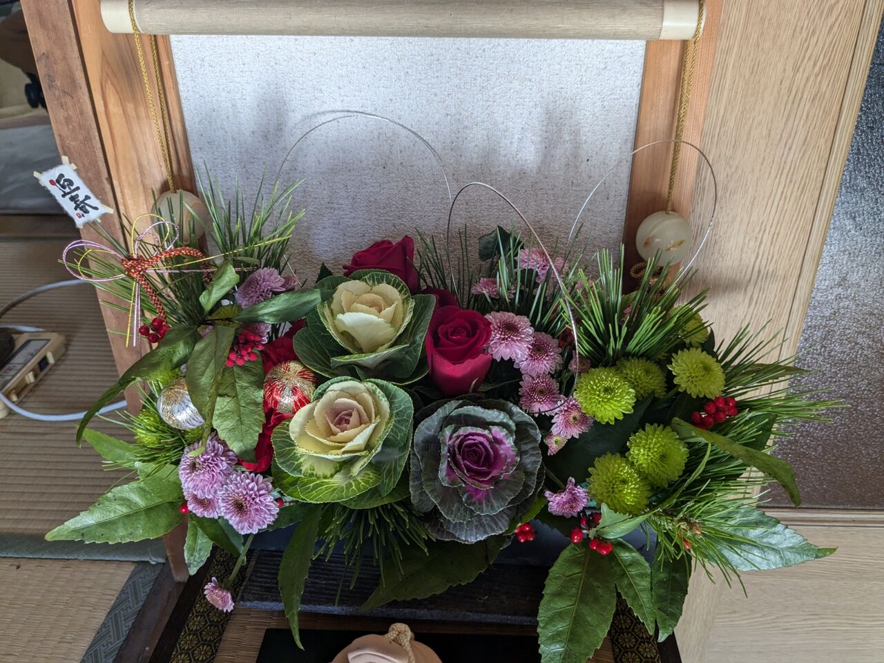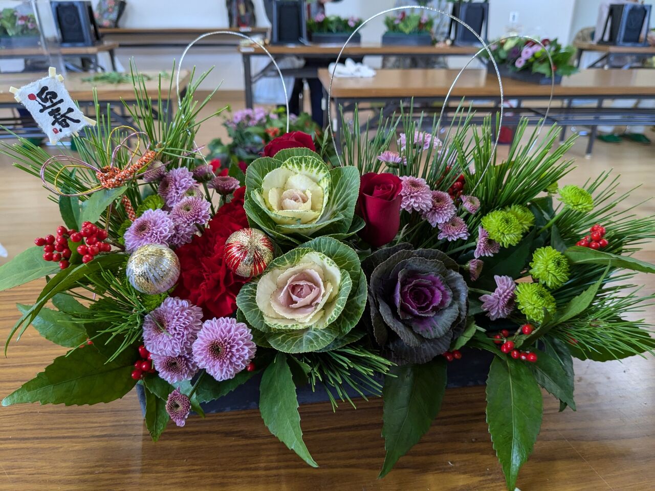 お正月にフラワーアレンジメントが