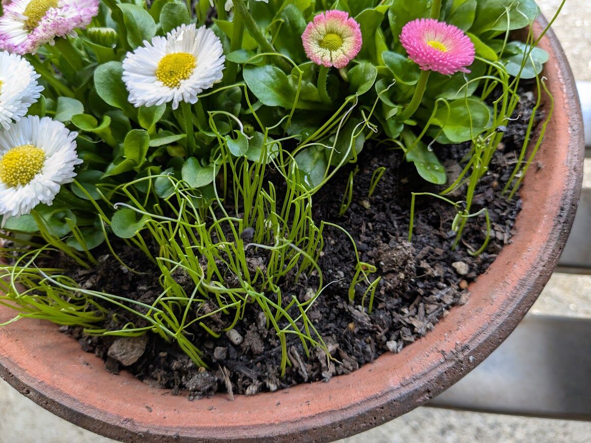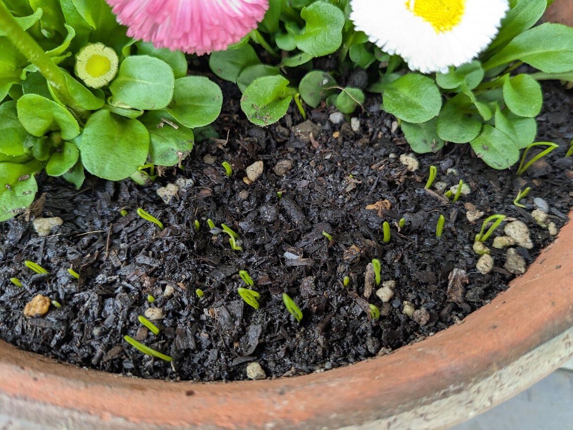 種を蒔いたけれど、芽が出てない土だけ入った植木鉢も