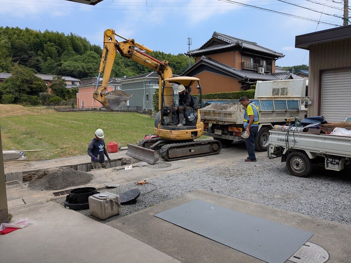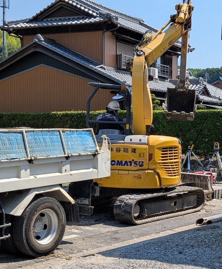今、町内はあちこちで、下水道工事が行われています