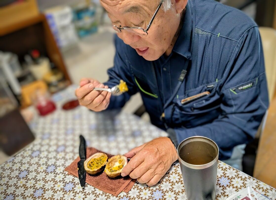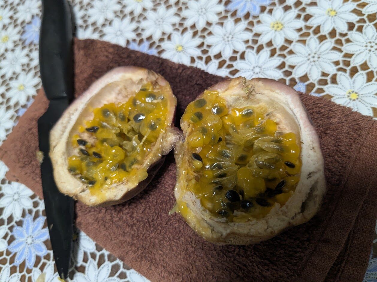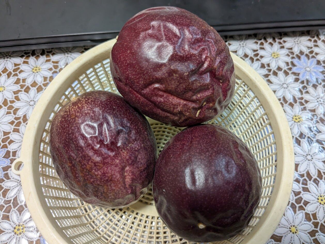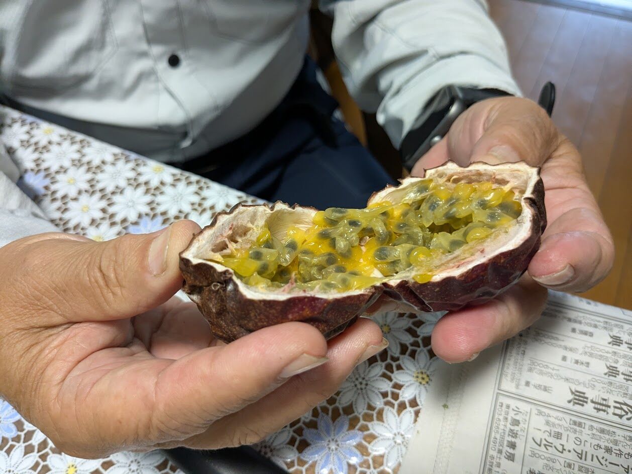 何事かと首を傾げていたら両手にパッションフルーツを抱えて配ってくれました。