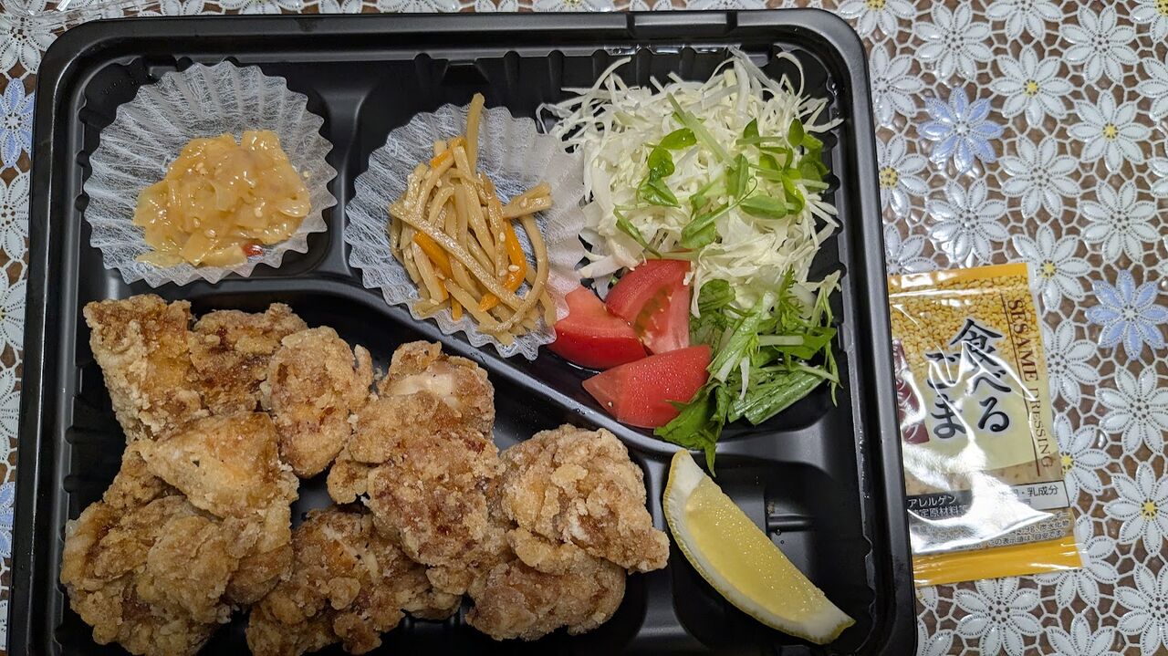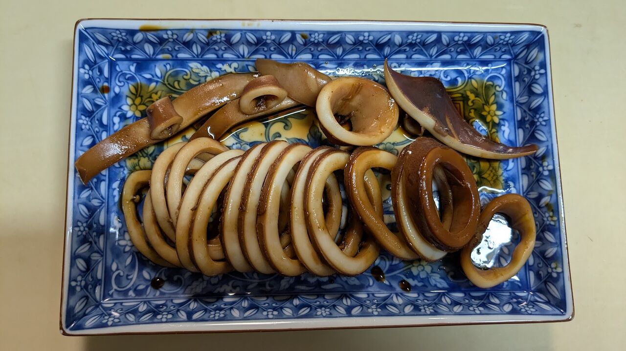 自宅夕食用。から揚げと烏賊の丸焼きの出来上がり