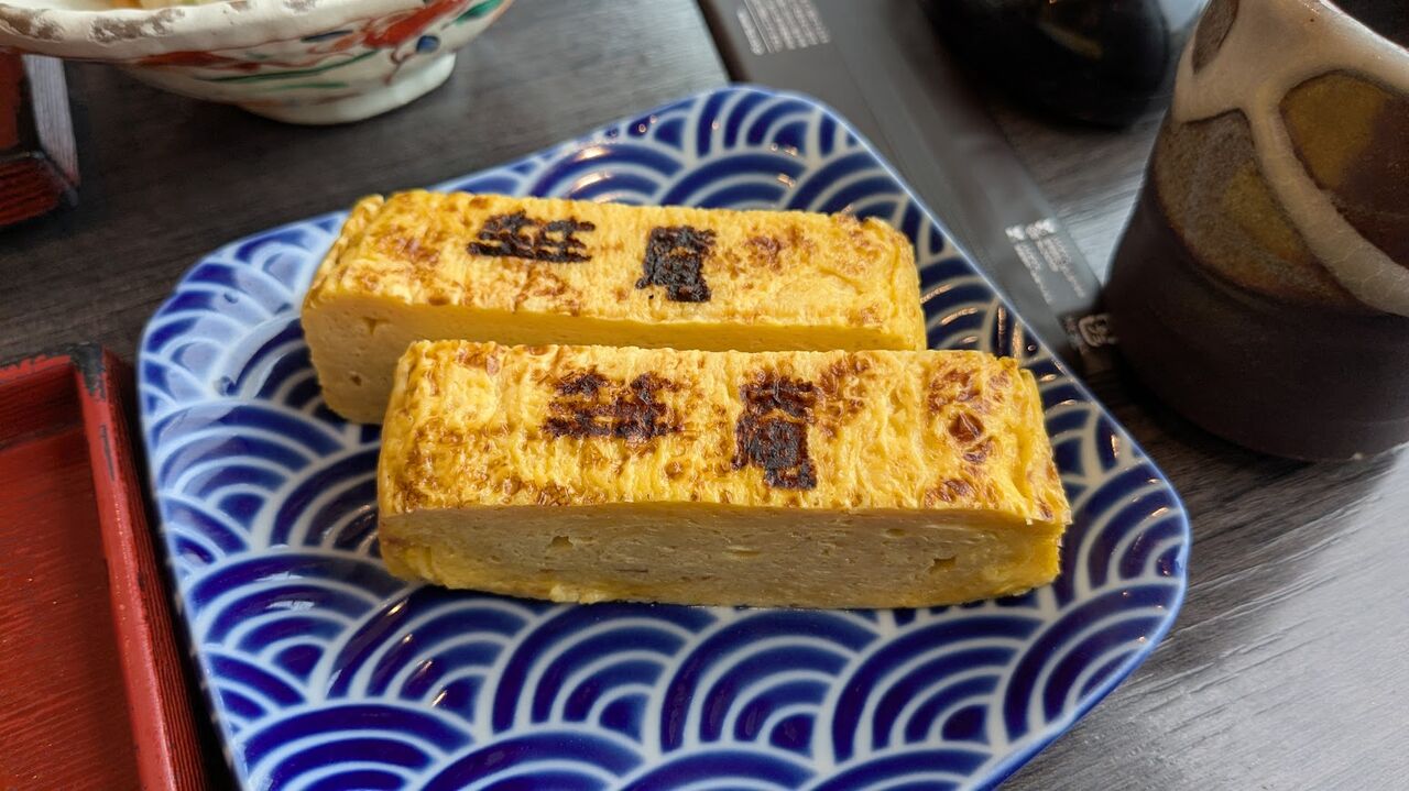 関西のだし巻きではなく、少し甘みのある玉子焼きです。