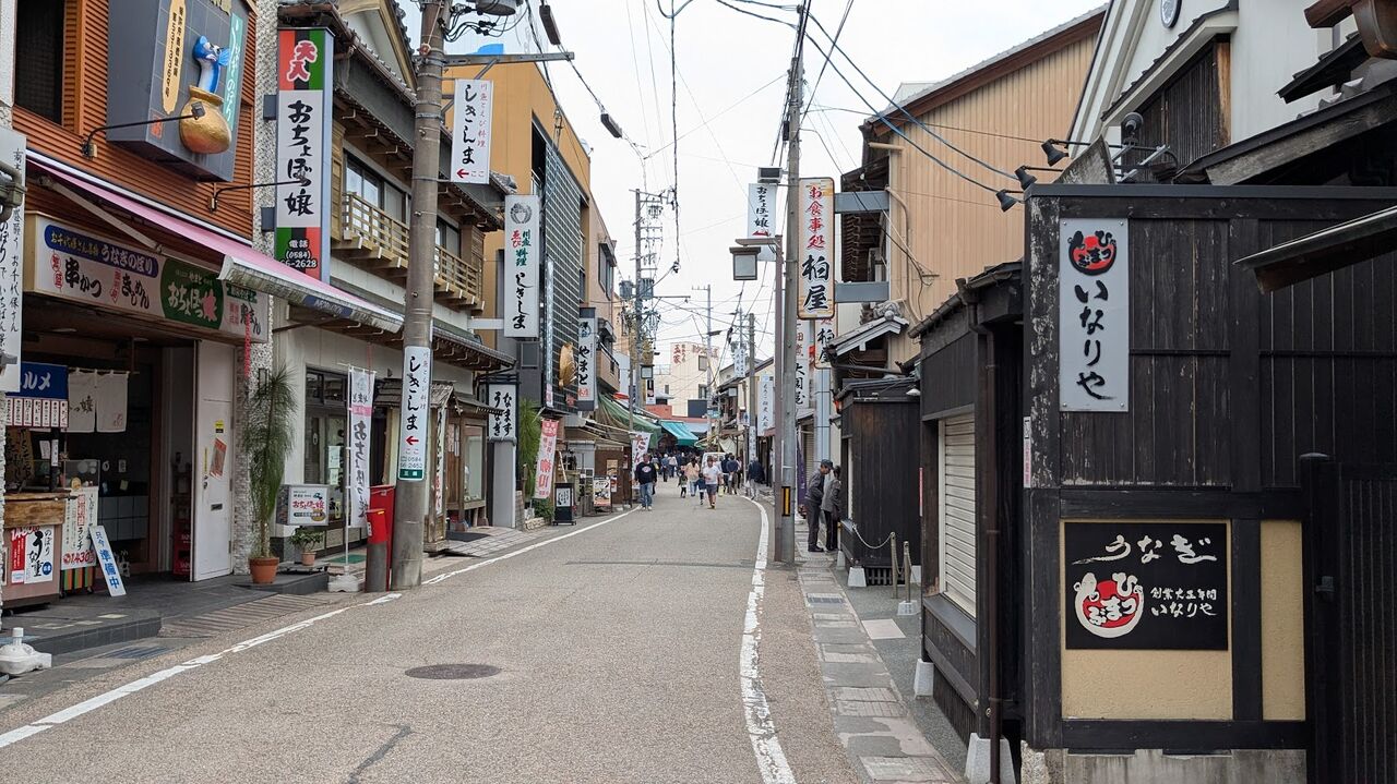 参道には、川魚や