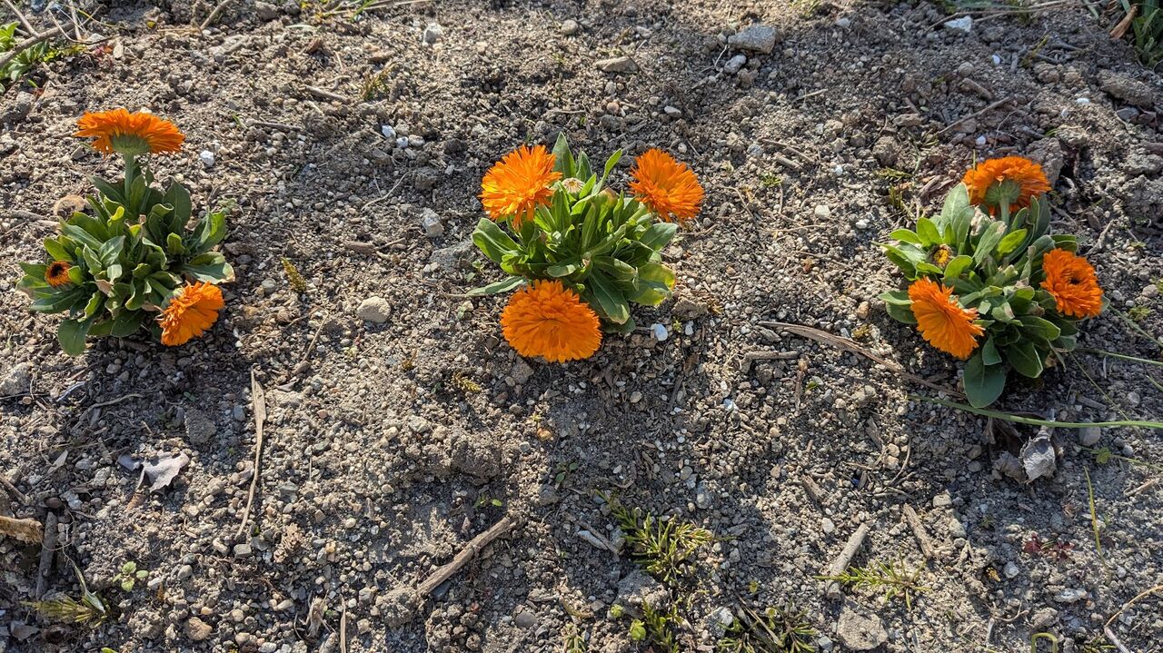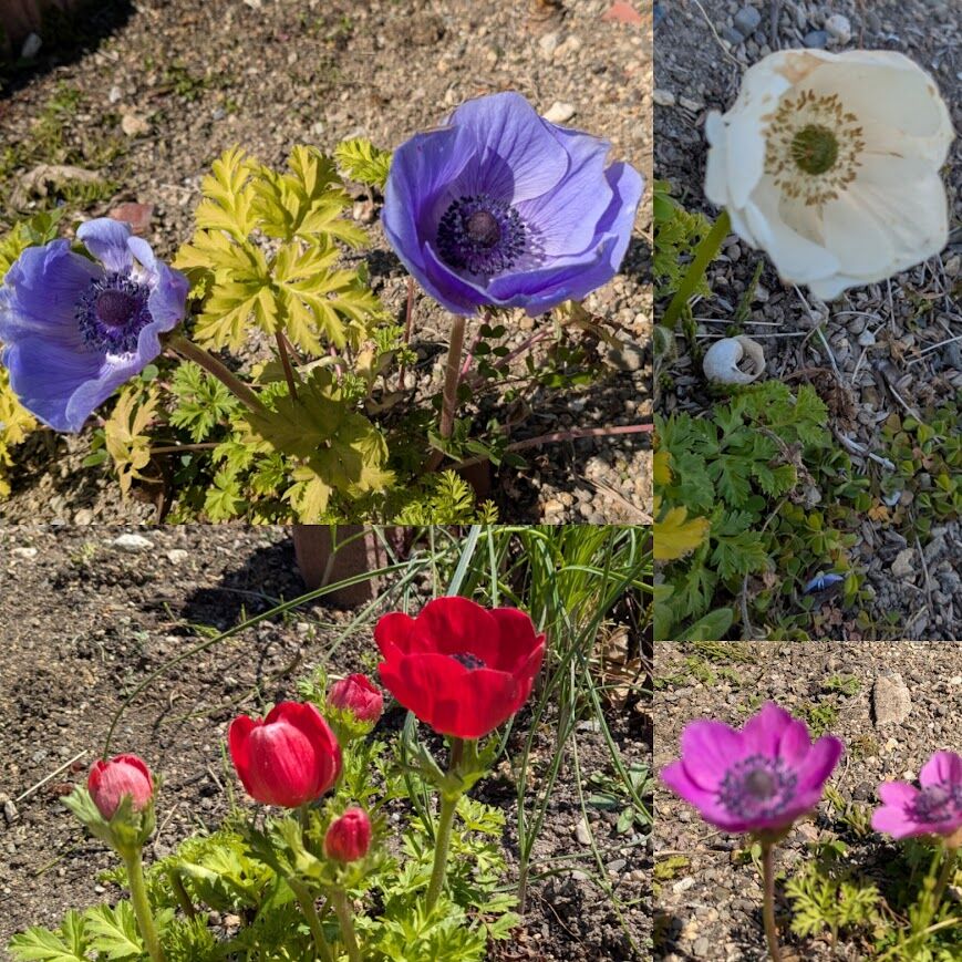 昨年のアネモネ。球根を掘り忘れた。健気に咲き競う